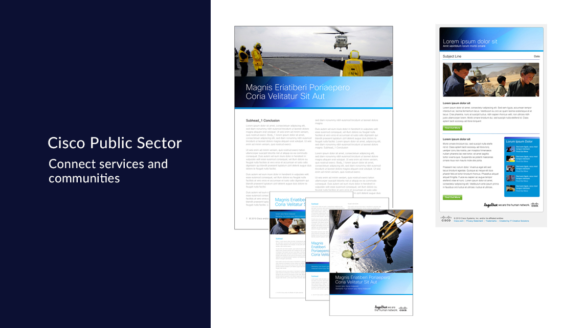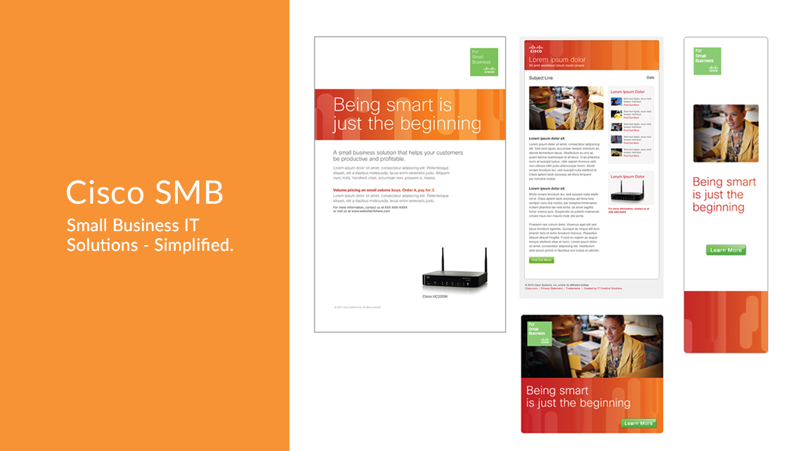 A series of campaigns that I worked on for Cisco. Each umbrella required a distinctive look and feel. The challenge was to come up with the visual designs that follow and maintain the integrity of the brand while also giving a unique identity for each of the business segment.